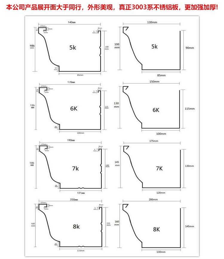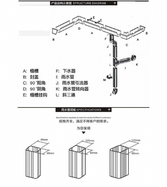 成品天溝生產(chǎn)廠家主營產(chǎn)品有:天溝雨水管、鋁合金雨水管、彩鋁落水管、鋁合金落水管等