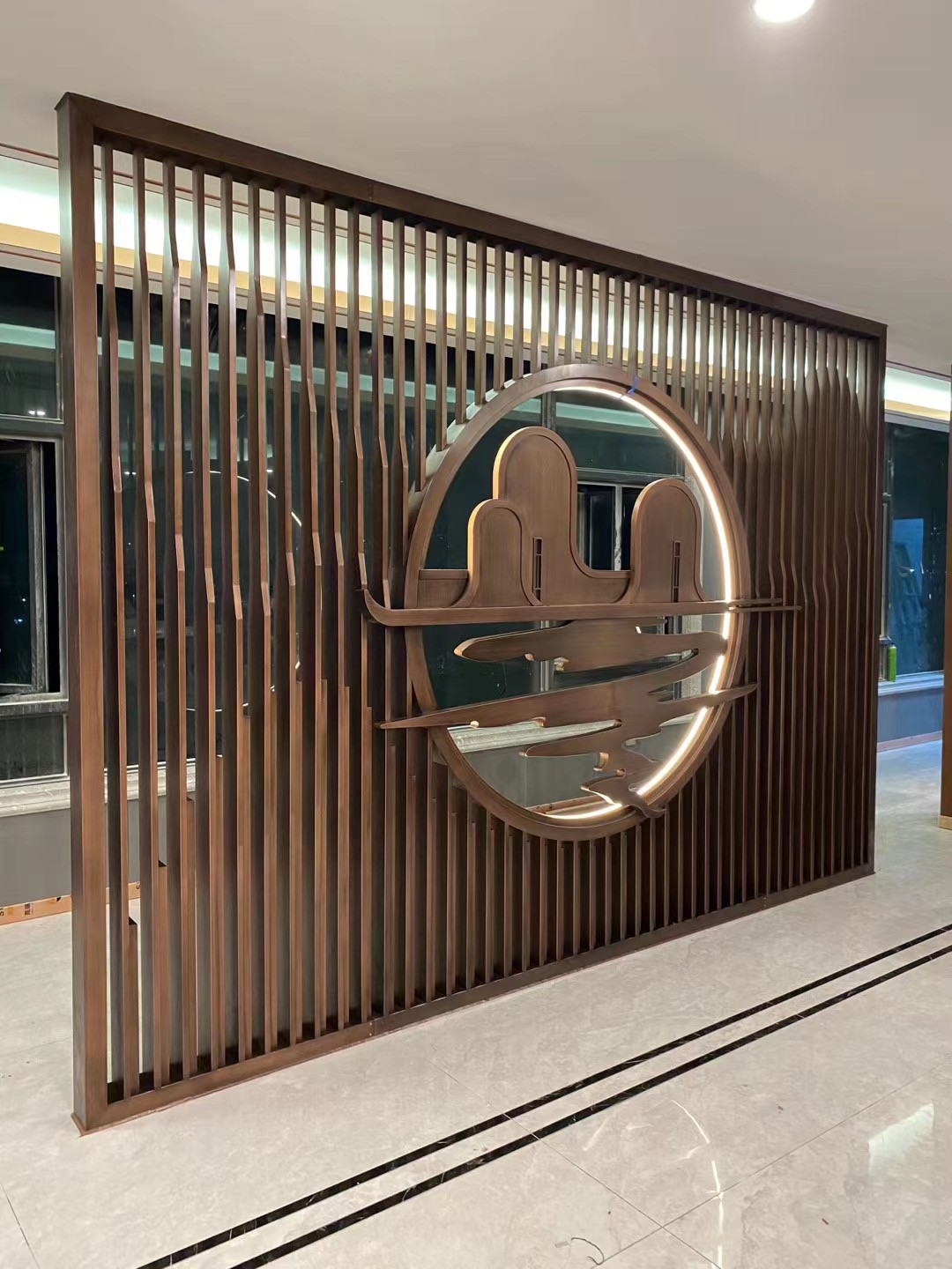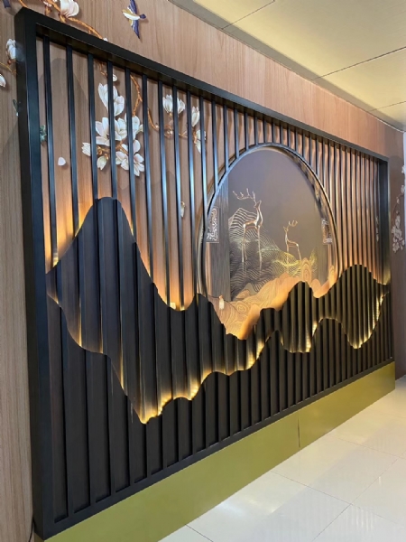 鋁藝影壁墻,端莊大氣,格調(diào)不凡,百年不銹,不開裂,不變形,不褪色,免維護(hù),安裝方便簡(jiǎn)單??筛鶕?jù)客戶圖紙要求現(xiàn)定制。